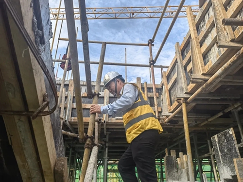 現(xiàn)階段項目同工程進度的樓棟有十來棟。“算下來每天要爬30多層樓。”葉劉杰說,自己是項目的黨員先鋒隊隊長,越是過節(jié)越要做好榜樣,質(zhì)量把控、現(xiàn)場安全、施工進度、成本控制,都要一絲不茍。