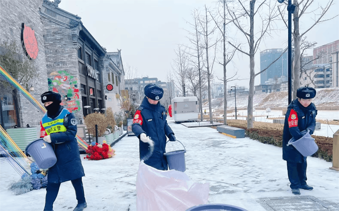 為保障亳都·新象街區(qū)安全運(yùn)行,商都發(fā)展公司提前部署應(yīng)對(duì)舉措。備足除雪物資,組織物業(yè)連夜掃雪除冰;通過商戶群、街區(qū)循環(huán)廣播推送防寒防凍、防滑提醒;安排工程人員對(duì)設(shè)施設(shè)備做足保溫防護(hù),全方位排查隱患,為商戶與市民筑牢安全屏障。